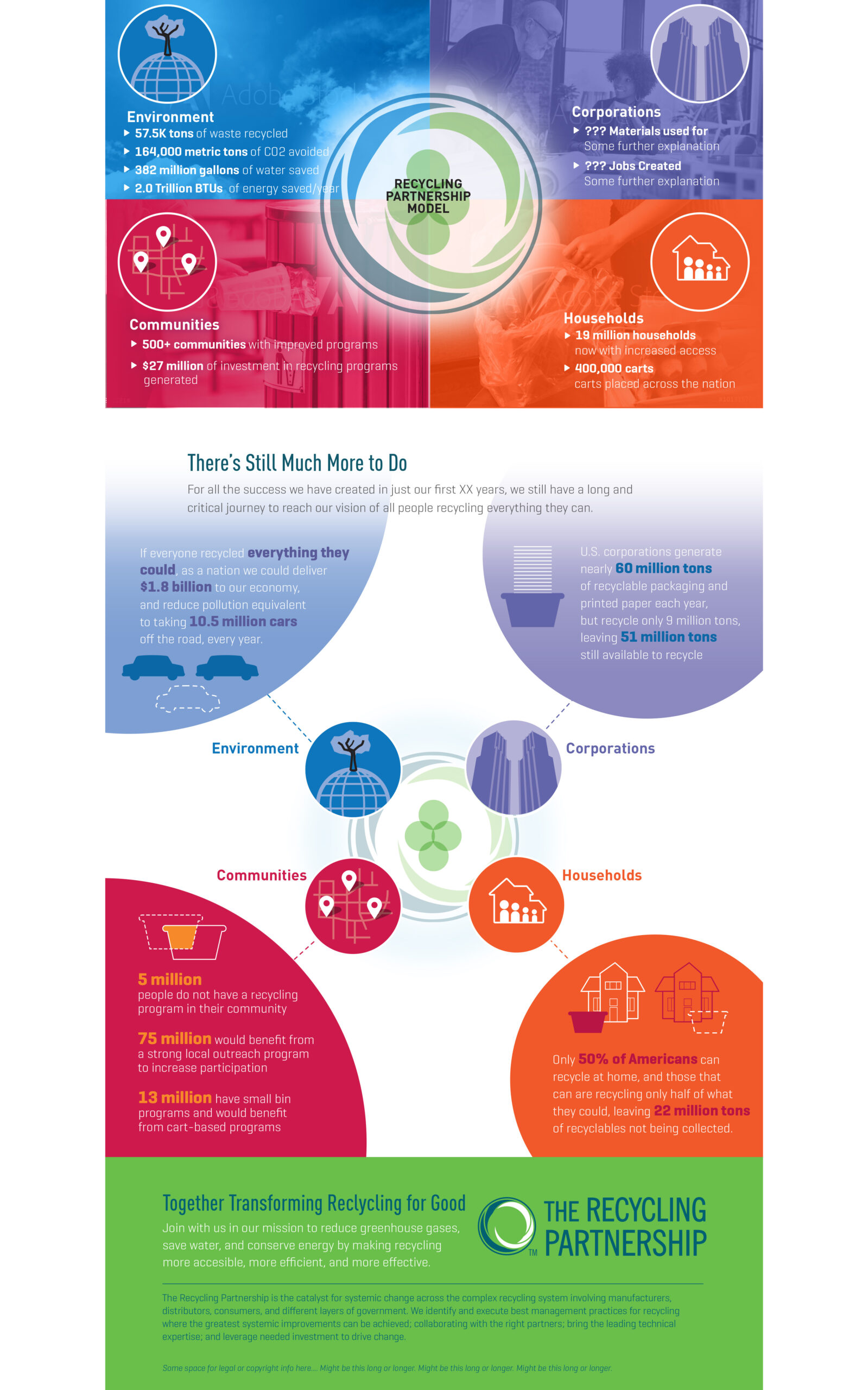 For this national nonprofit organization we created an infographic that visually presents the organization's mission and key programs, their partner network, success measures, and local success stories.